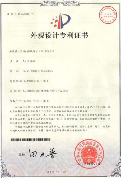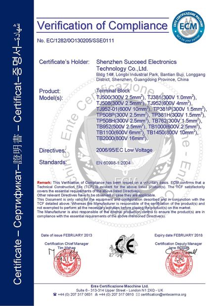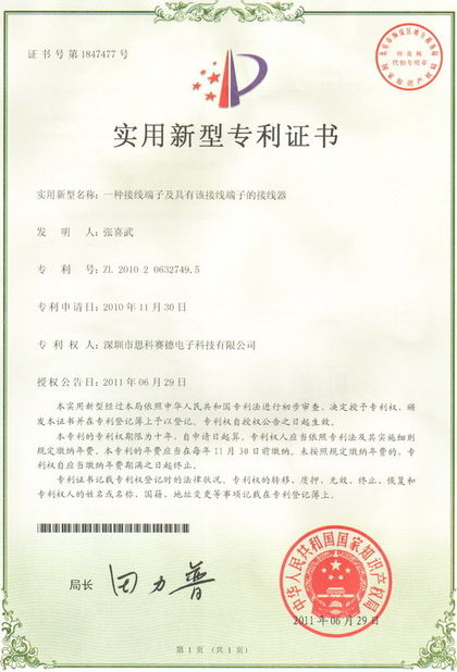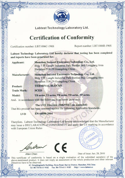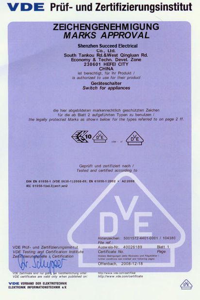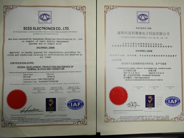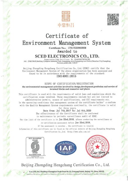 SCED ได้รับการรับรองระบบการจัดการ ISO9001, ISO14001, เป็นไปตามมาตรฐาน ROHS, REACH และได้รับการรับรอง UL、CUL、cULus、CE、VDE、CQC